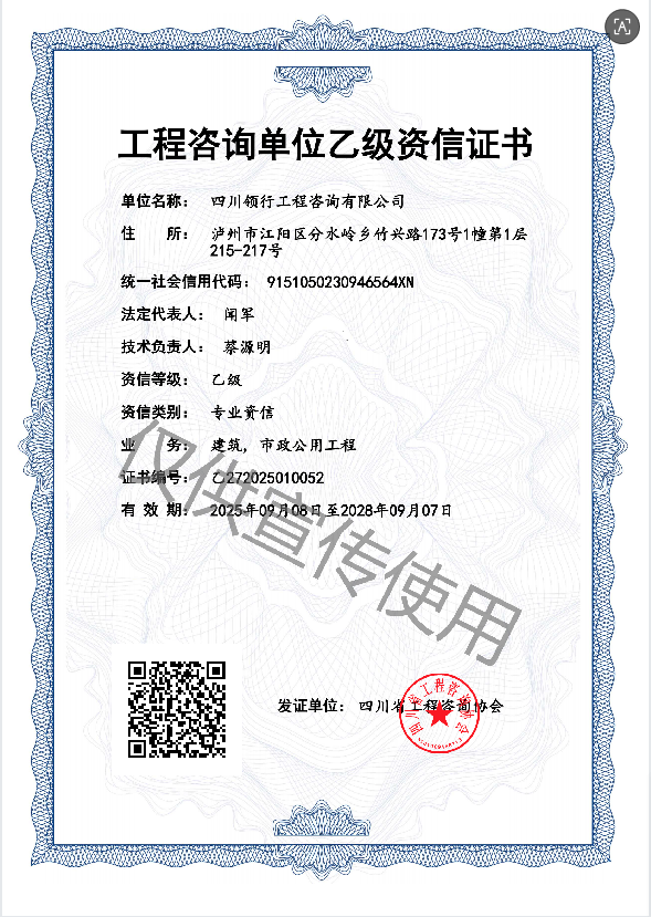 工程咨詢單位乙級資信證書